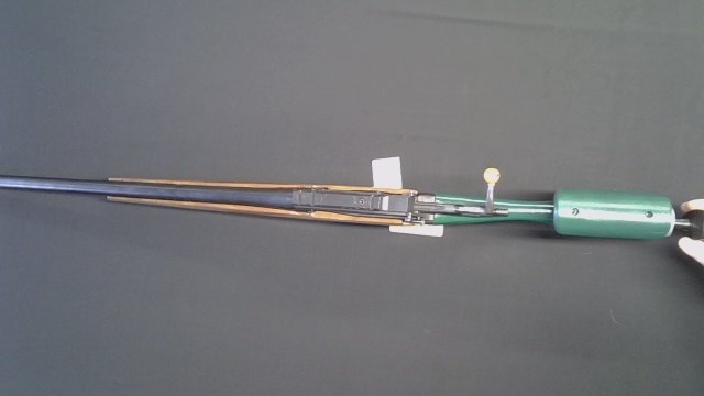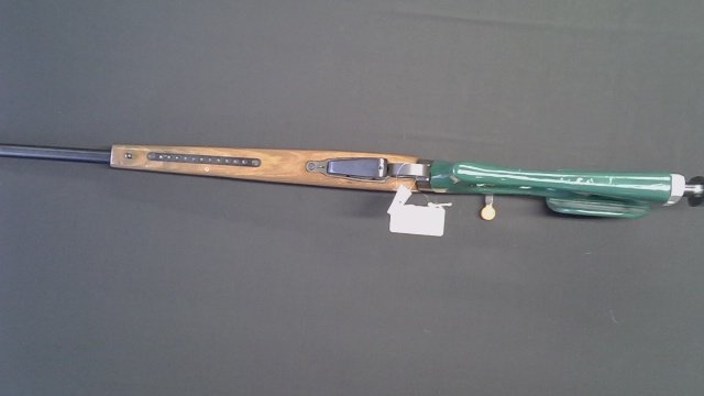 Custom made adjustable stock painted green.
